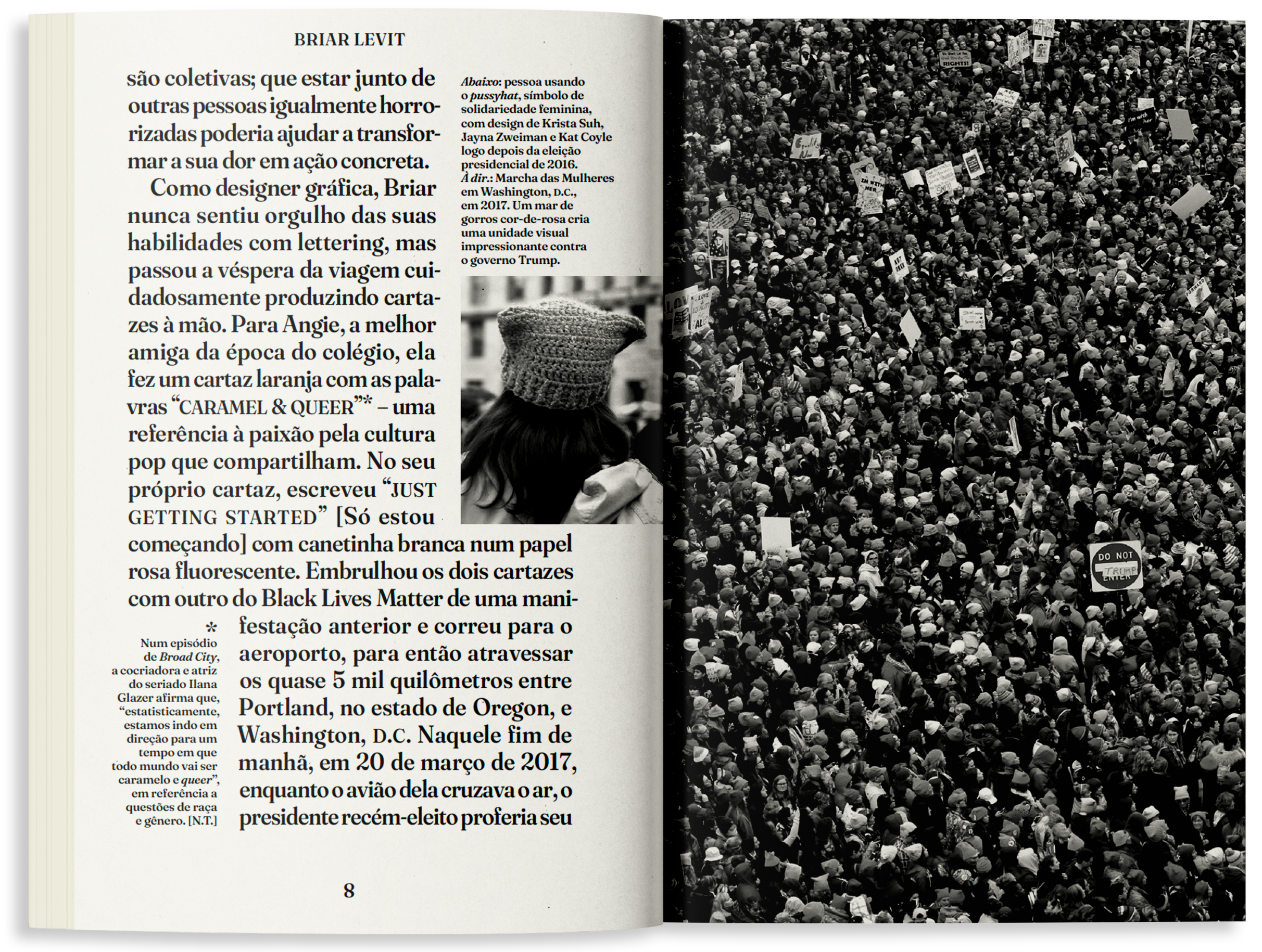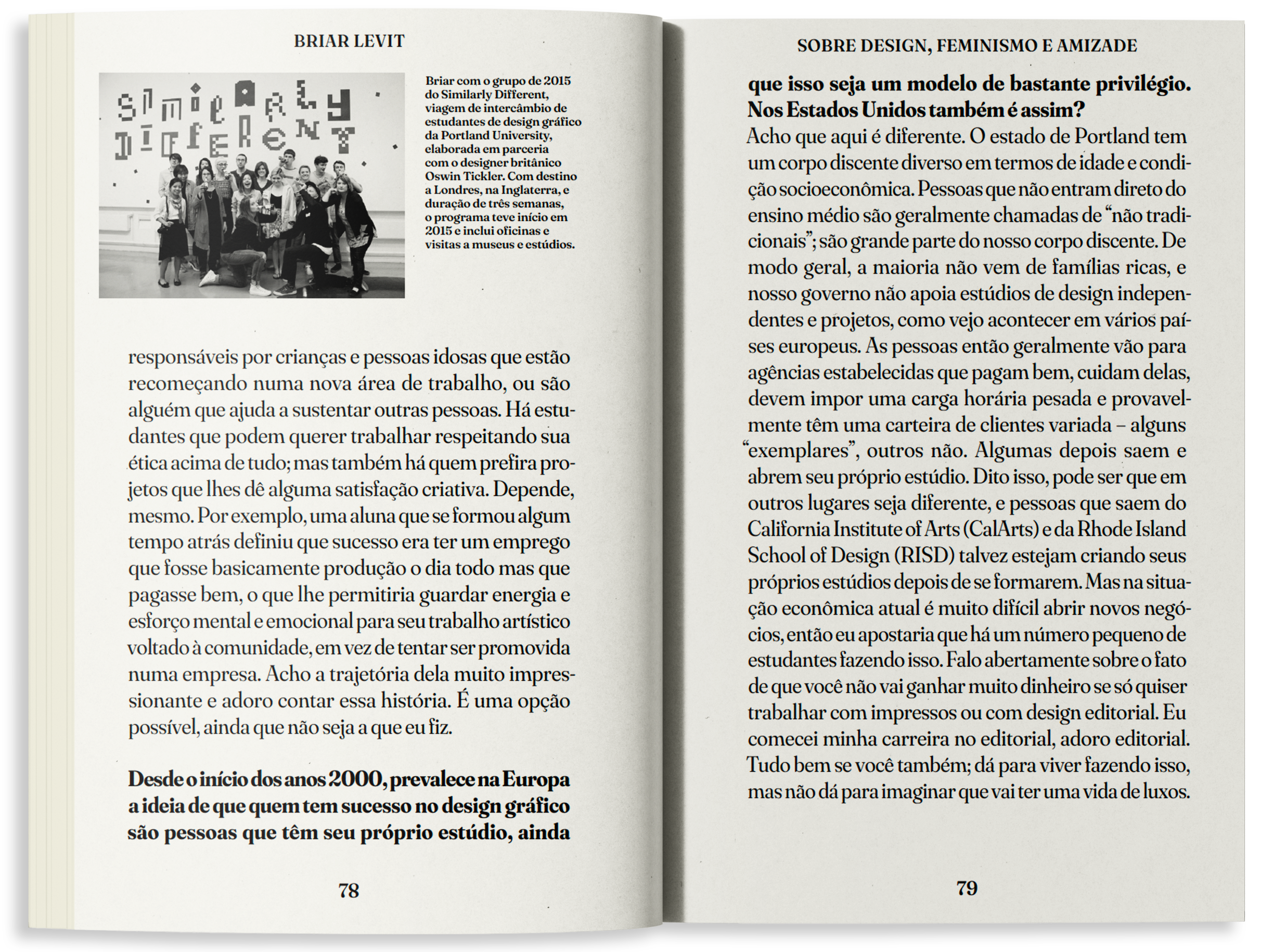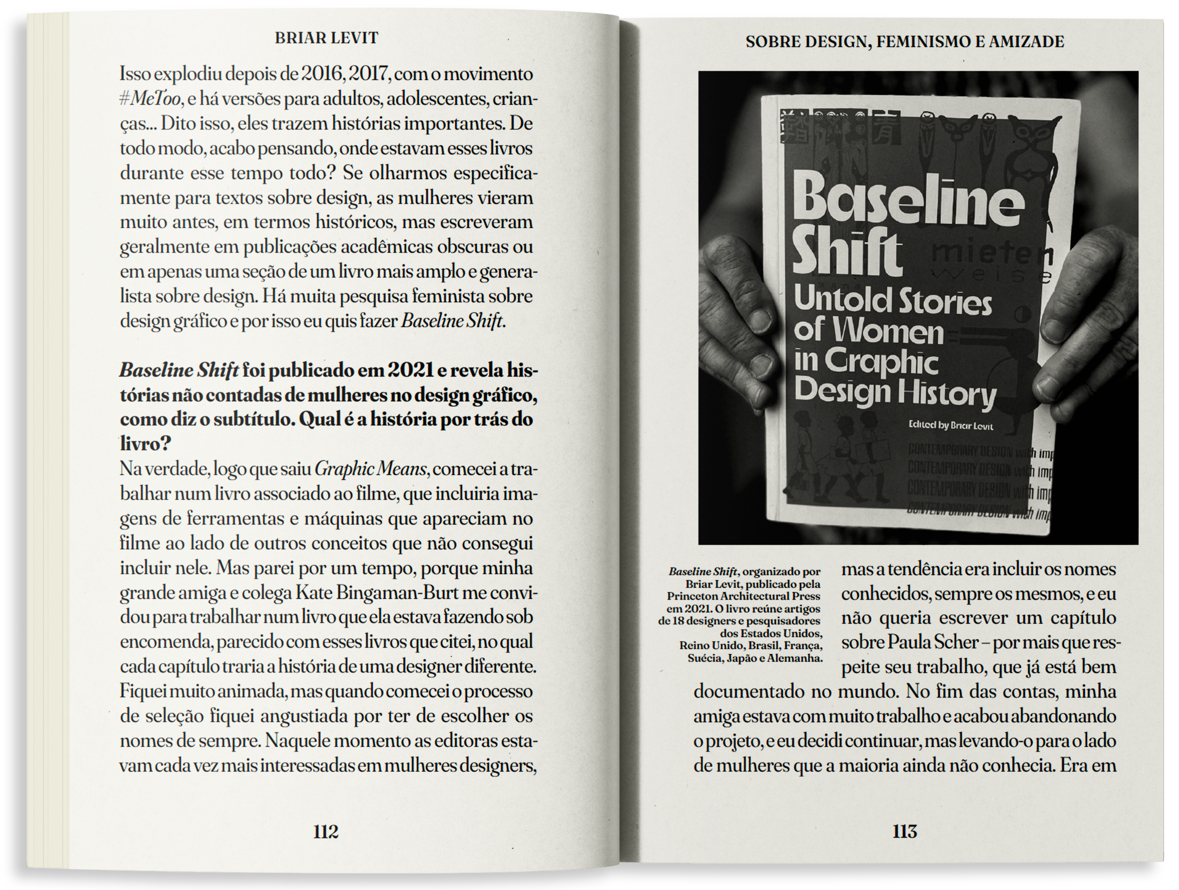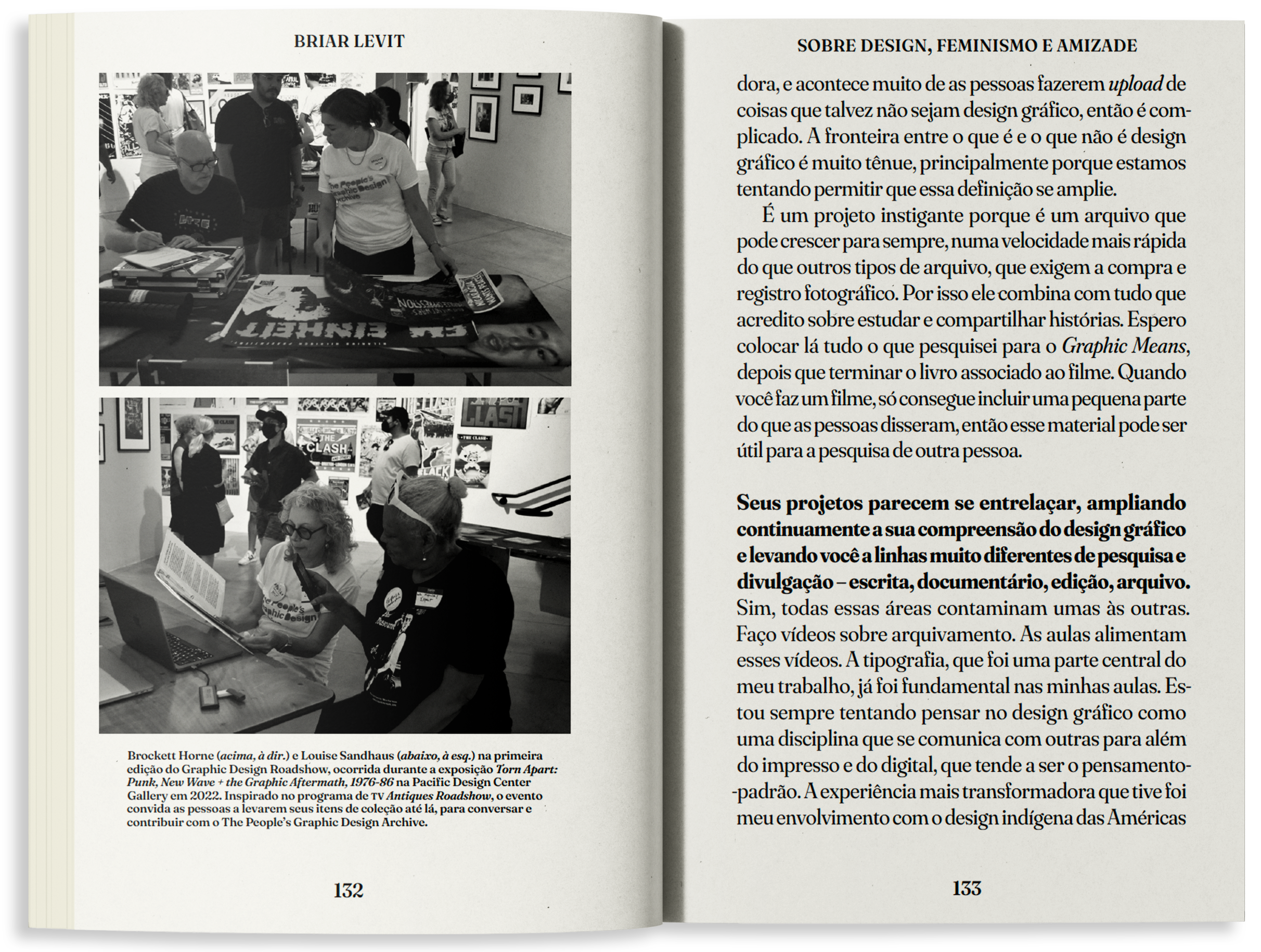 Como uma caminhada em terreno desconhecido, a trajetória de Briar Levit pelo design é cheia de surpresas e reviravoltas. Da agitada redação da revista Bitch até passeios pelas trilhas em Kent, na Inglaterra, aos melhores brechós de Portland, Briar transita pela sala de aula, pela escrita, pela edição, pelos arquivos e pelos documentários. Esta entrevista ilustrada acompanha as curvas desse caminho numa paisagem feminista em transformação, lançando luz sobre como design e ativismo se cruzam, as micropolíticas do trabalho e a importância da amizade. Uma conversa franca sobre como rotas não planejadas podem levar aos destinos mais reveladores.