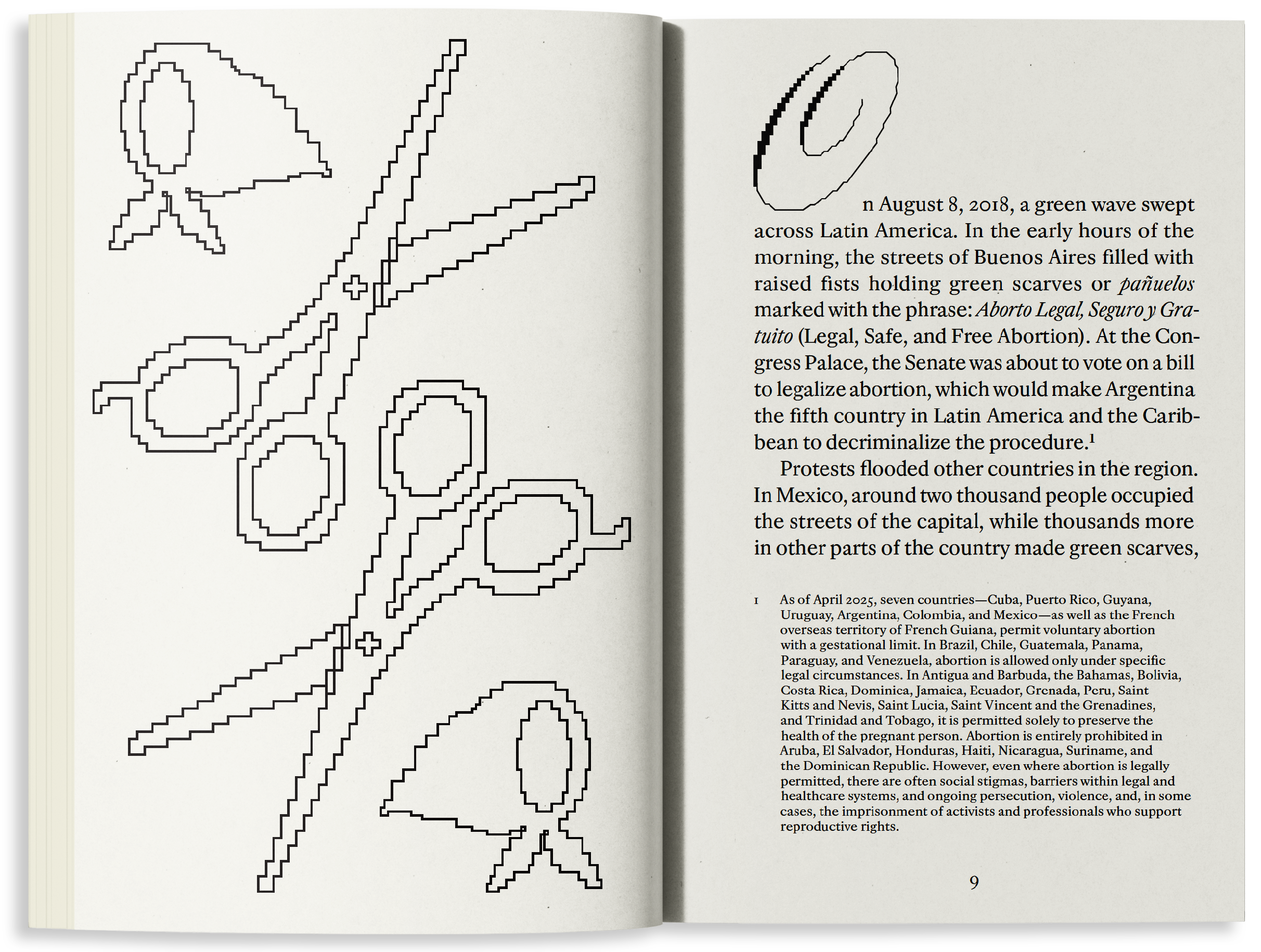 In 1986, Cheryl Buckley argued that design history is shaped by patriarchal biases that trivialize, marginalize, or erase women’s contributions. She advocated for a feminist critique that not only challenges these patriarchal frameworks but also shifts the focus away from individual achievements to recognize women’s roles as designers, consumers, and subjects of representation. Buckley revisited the evolution of the field in 2020, reflecting critically on both its progress and persisting challenges while also addressing gaps in her earlier thinking. As Bibiana Oliveira Serpa notes in her foreword, “questioning one’s own worldview is, in itself, a feminist act.” In her essay, Serpa examines the trajectory of the green pañuelo, a crucial feminist symbol, weaving Buckley’s insights into the broader context of Latin American struggles for justice and equality.