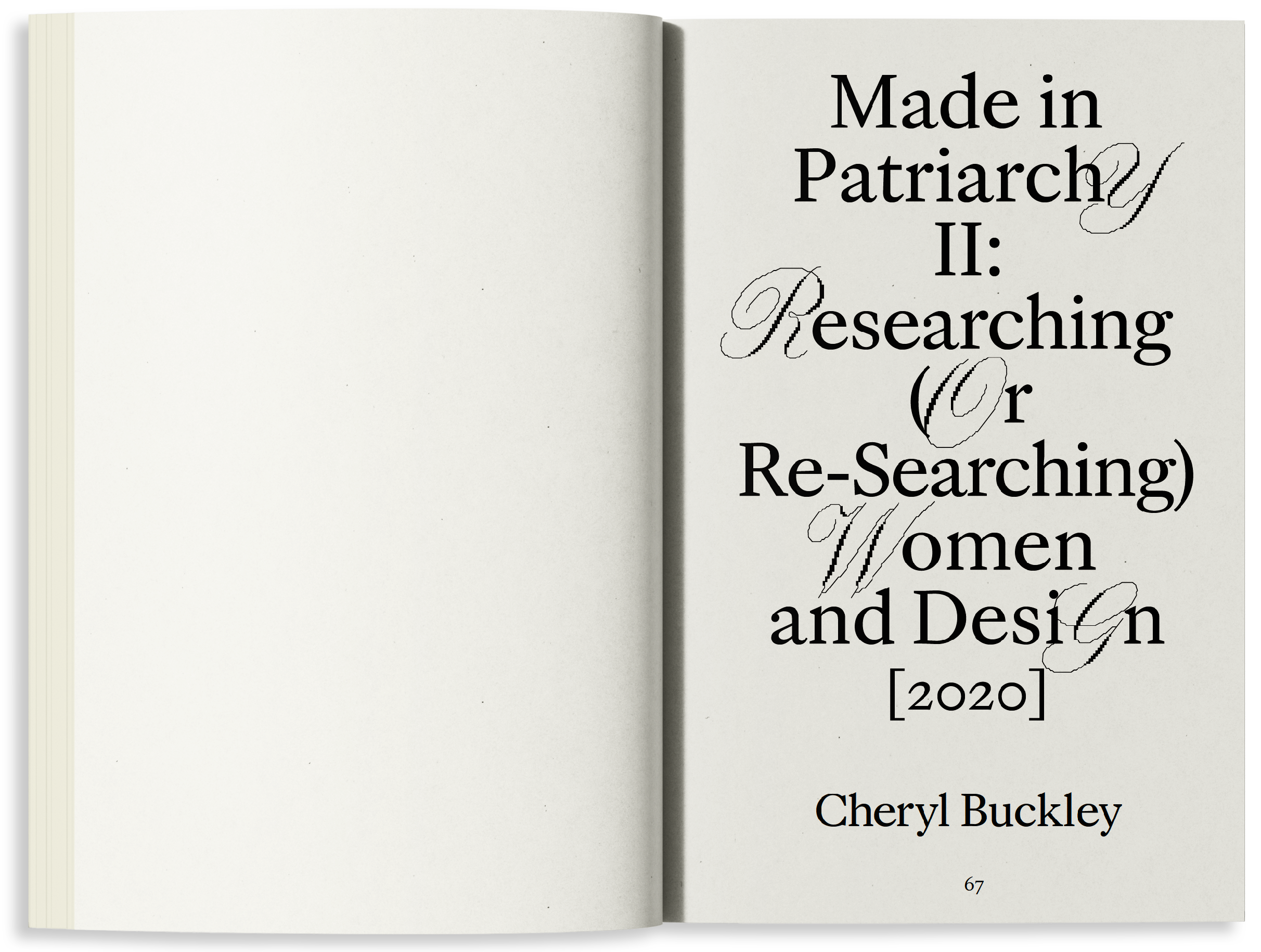 Made in Patriarchy brings together two key texts by design historian Cheryl Buckley.